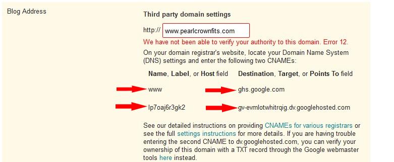CNAME records on blogger domain blog