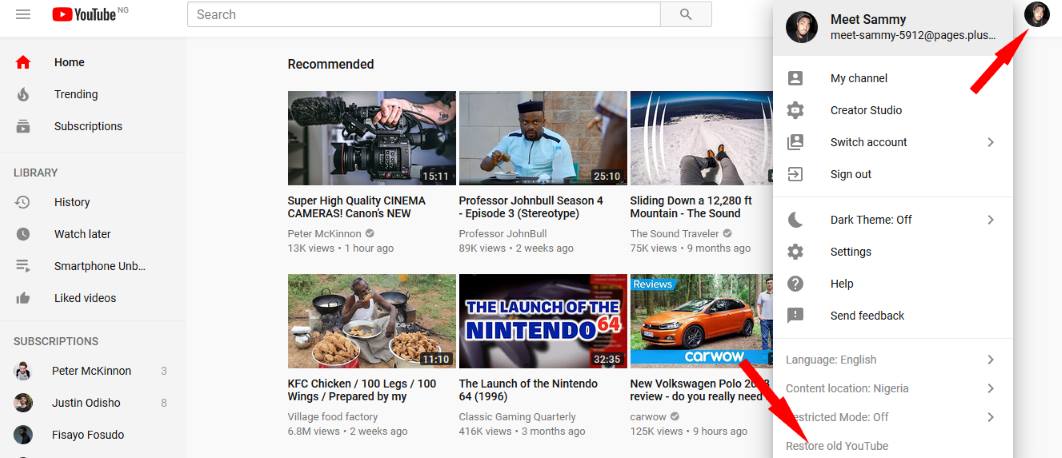 restore old youtube design layout