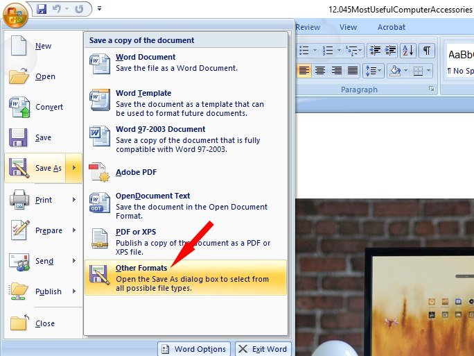 save as other formats on microsft word