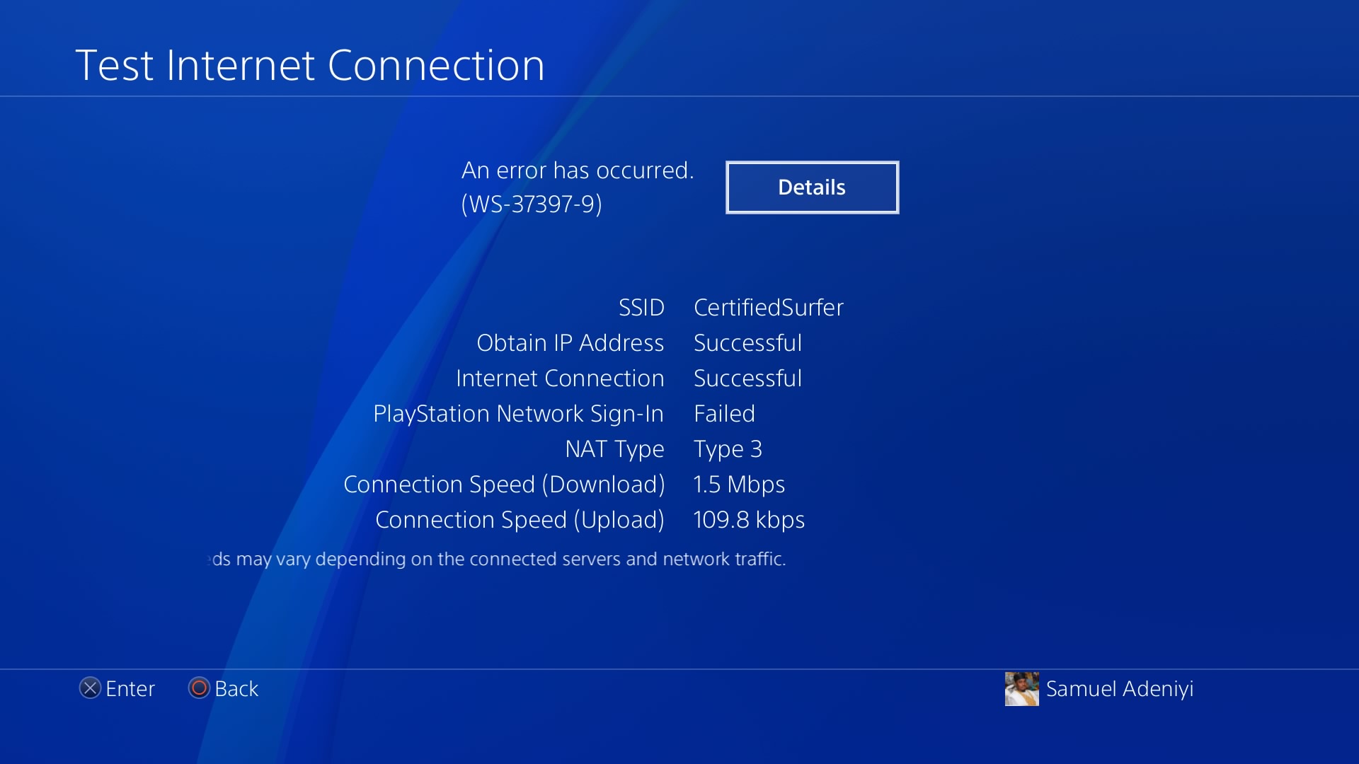 Unable to connect to Playstation network
